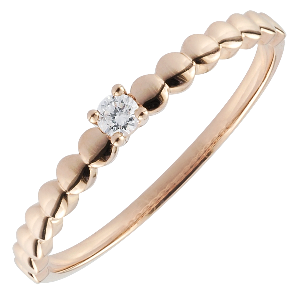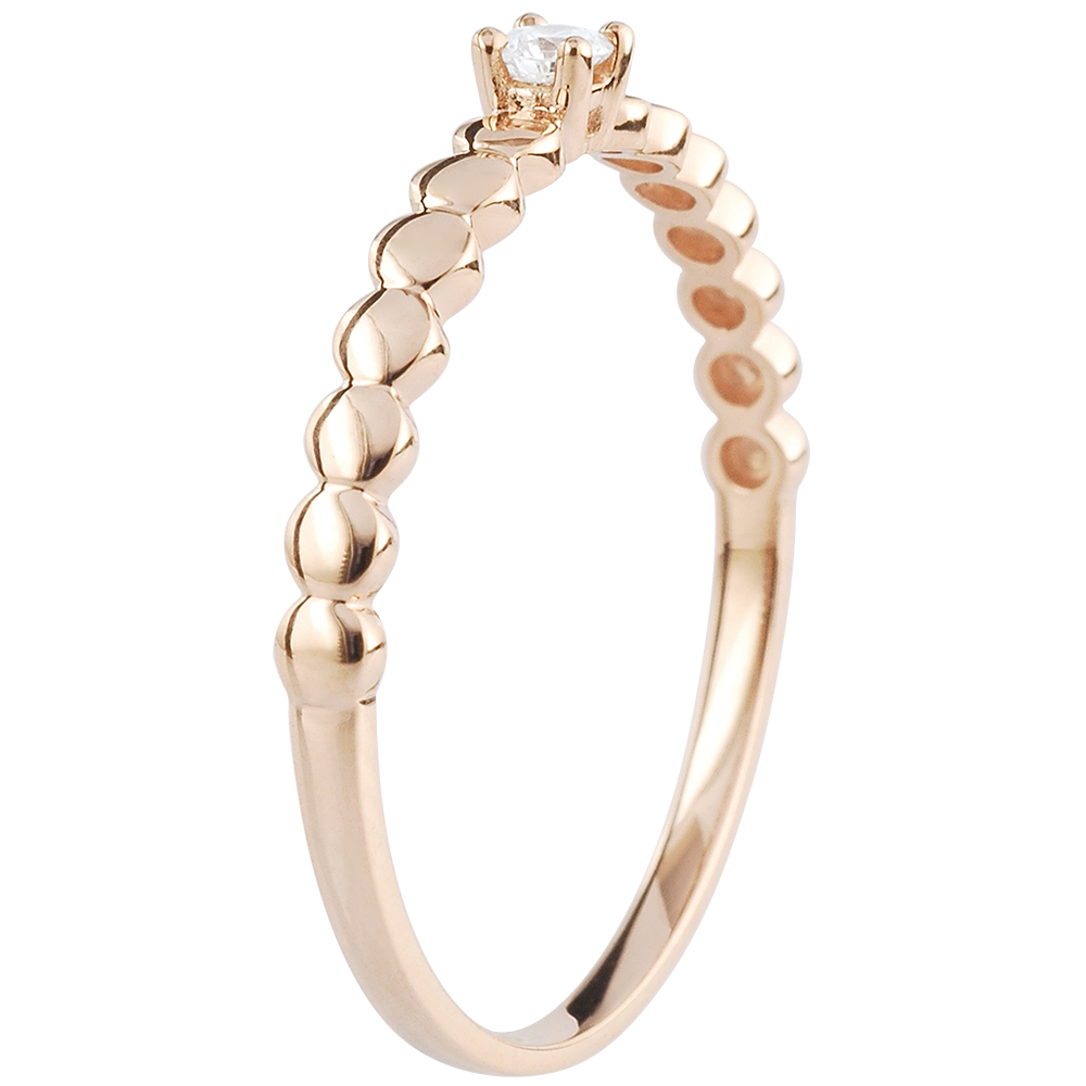 O montură din aur roz asemănătoare bomboanelelor ce ţine un diamant solitaire încrustat cu 4 gheruţe. Un inel de logodnă original şi feminin.