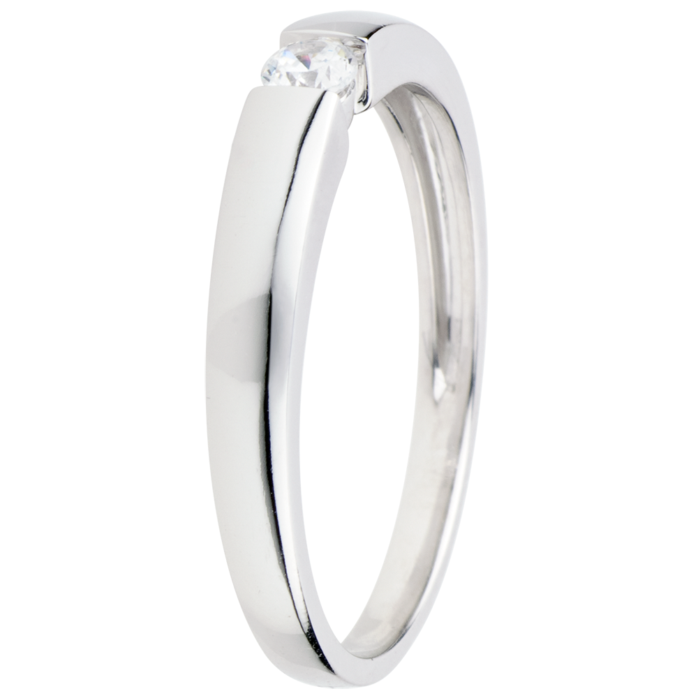 Un diamant fixat într-o montură din aur alb devenind un solitaire modern şi oferind un confort optim.