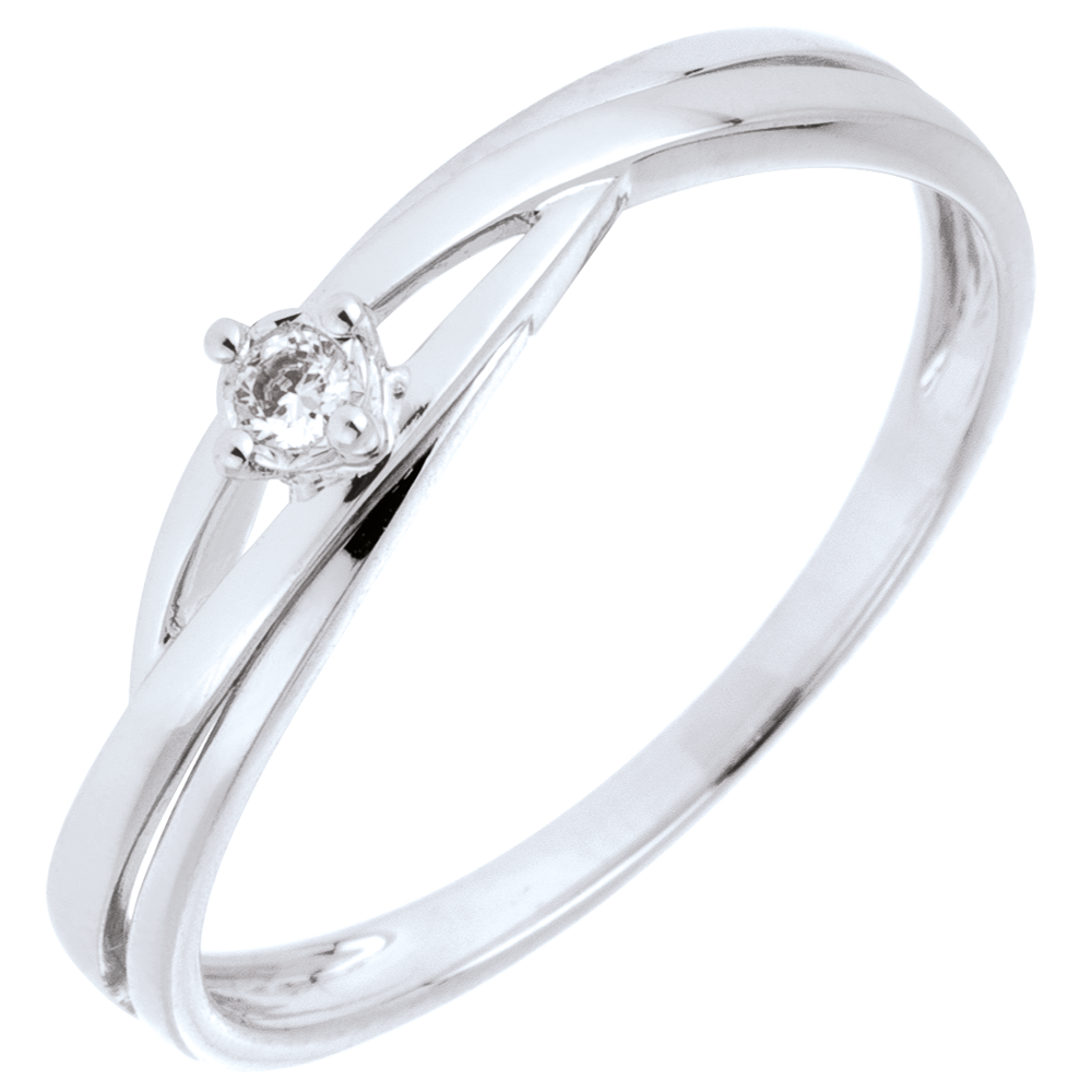 Inel solitaire Cuib Preţios - Dova - aur alb de 9K - diamante de 0.03 carate