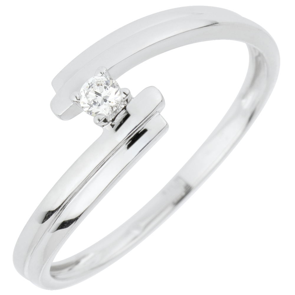 Inel Solitaire Cuib Preţios - Iubire Veşnică - aur alb de 18K