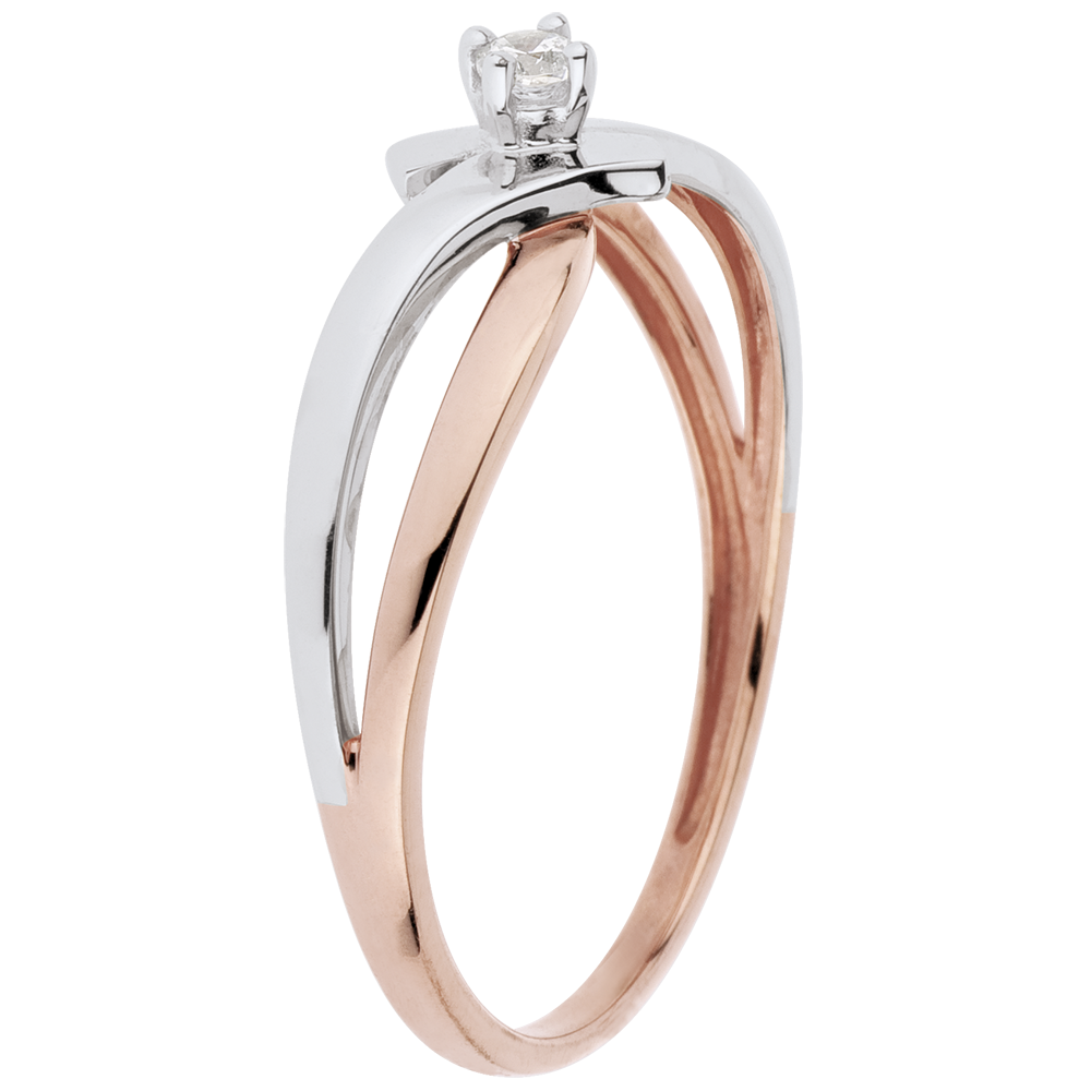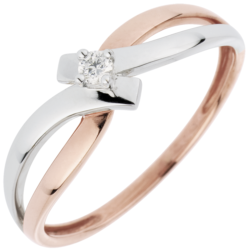 Inel Solitaire Cuib Preţios - Lumină - diamant 0.05 carate - aur alb şi aur roz de 18K