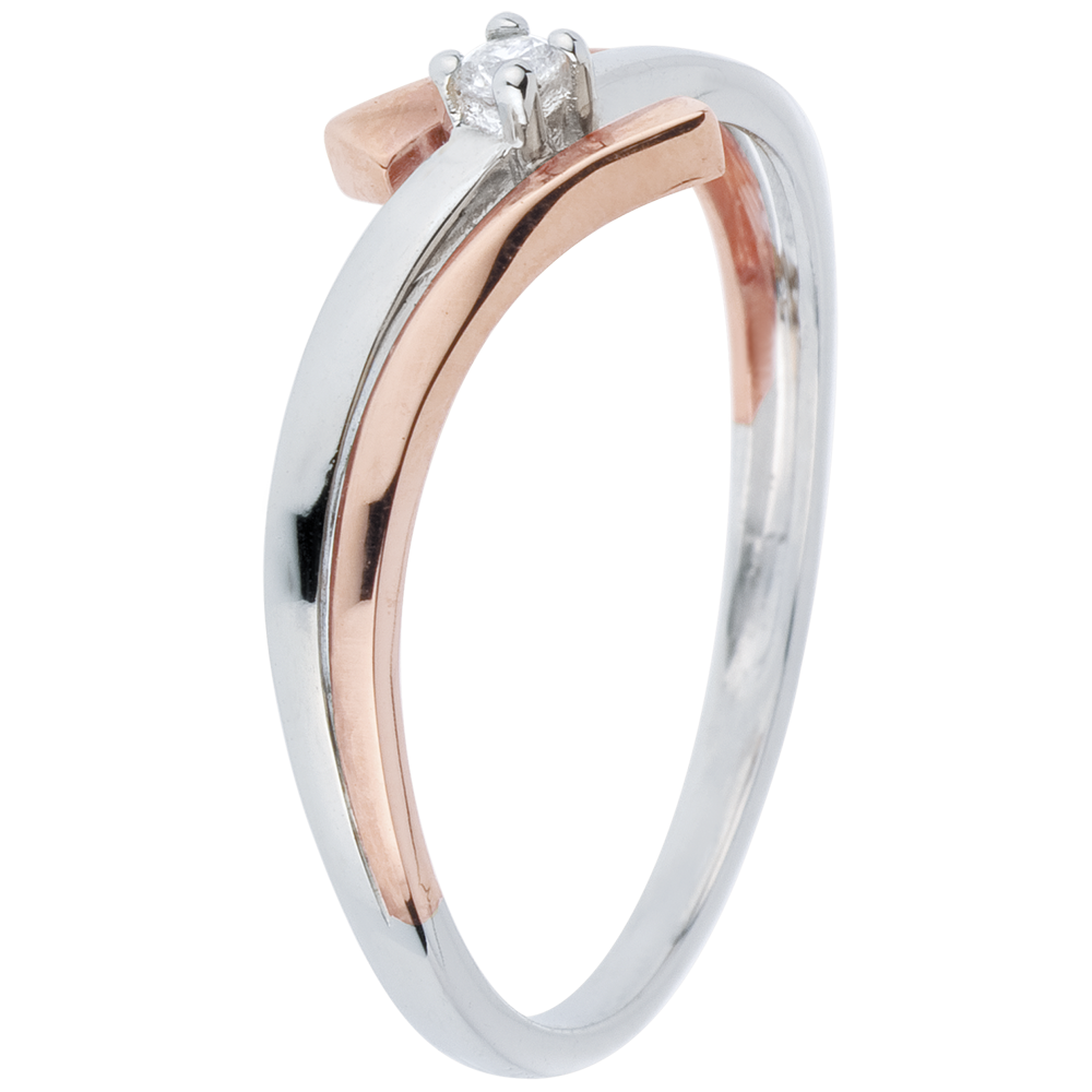 Inel Solitaire Cuib Preţios - Lumină variantă - diamant 0.032 carate - aur alb şi aur roz de 18K