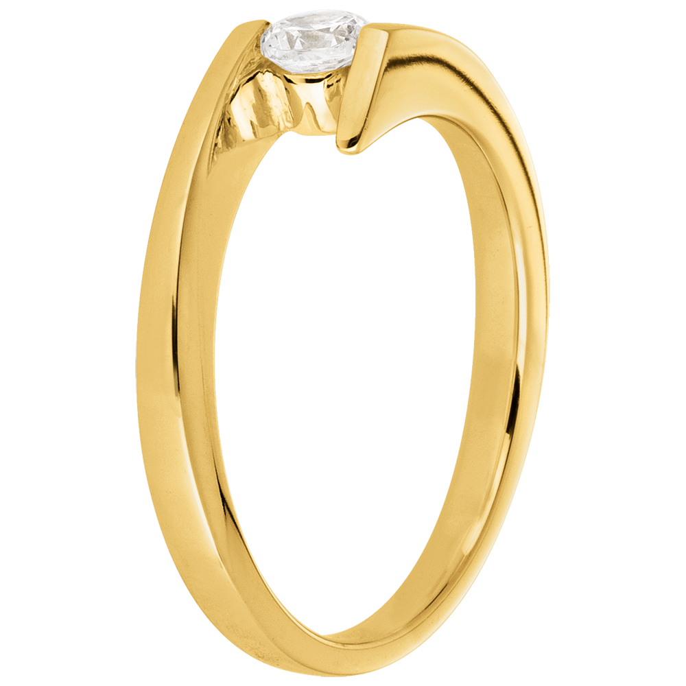 Inel Solitaire Cuib Preţios - Prinţesă stea - aur galben de 18K - diamant de 0.13 carate