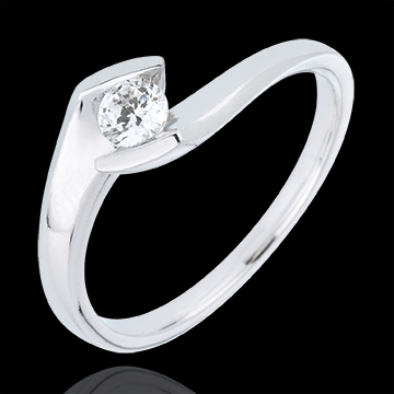 Inel solitaire Cuib Preţios - Seară de vară - aur alb de 9K - 0.22 carate