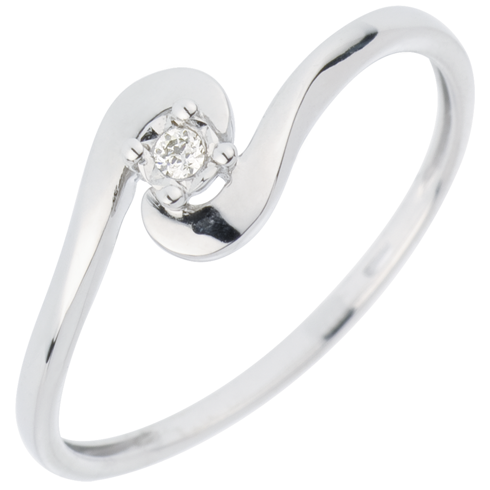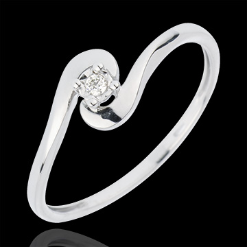 Inel Solitaire Cuib Preţios - Unirea Iubirii - aur alb de 18K