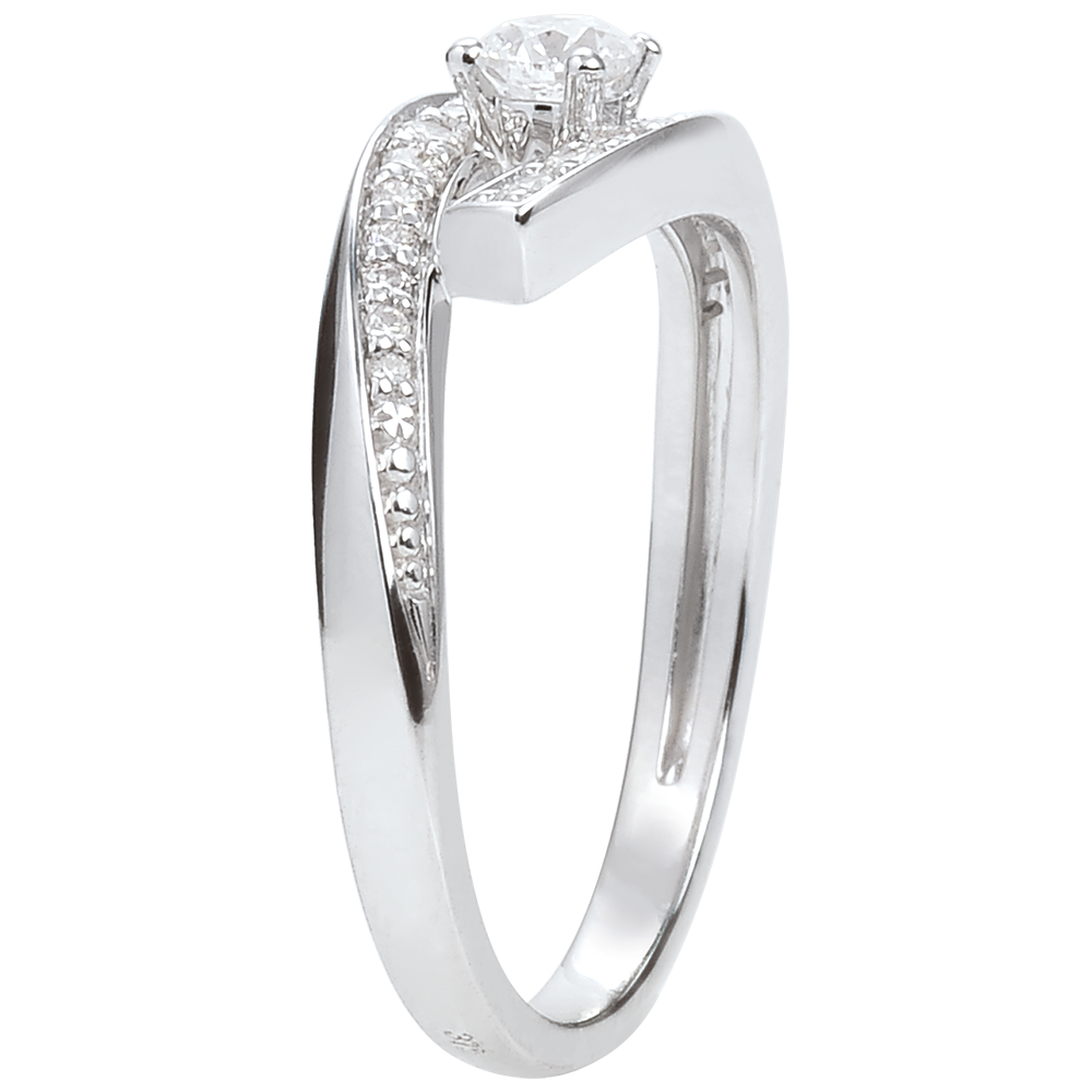 Inel Solitaire Destin - Diva - aur alb de 9K - model mic - 0.08 carate