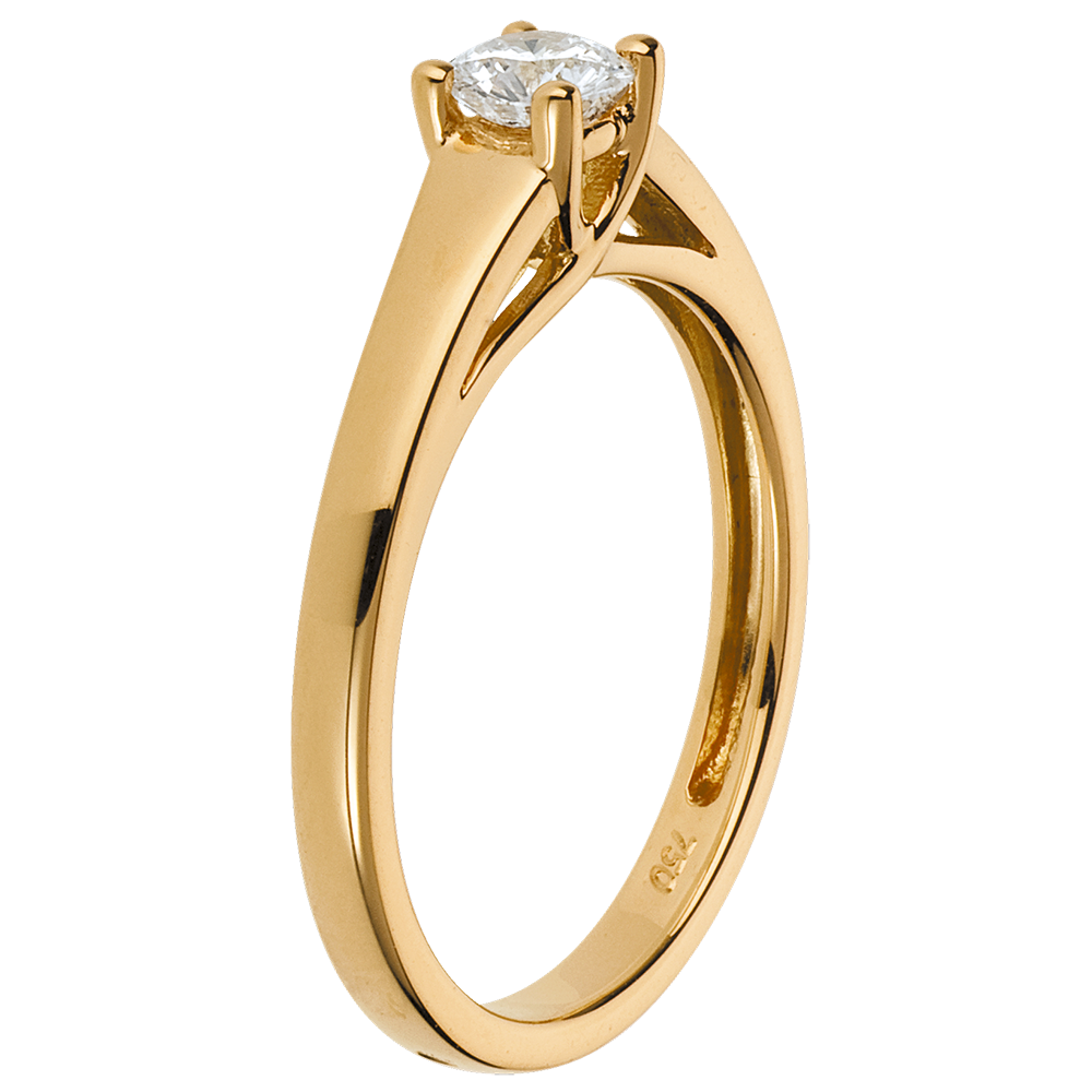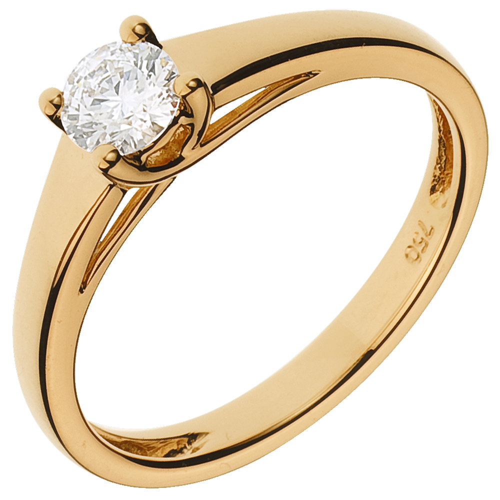 Inel solitaire Diademă aur galben de 18K - diamant 0.34 carate