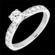 un diamant solitaire alb strălucitor este înconjurat de ambele părţi de briliante ce cresc în dimensiuni.