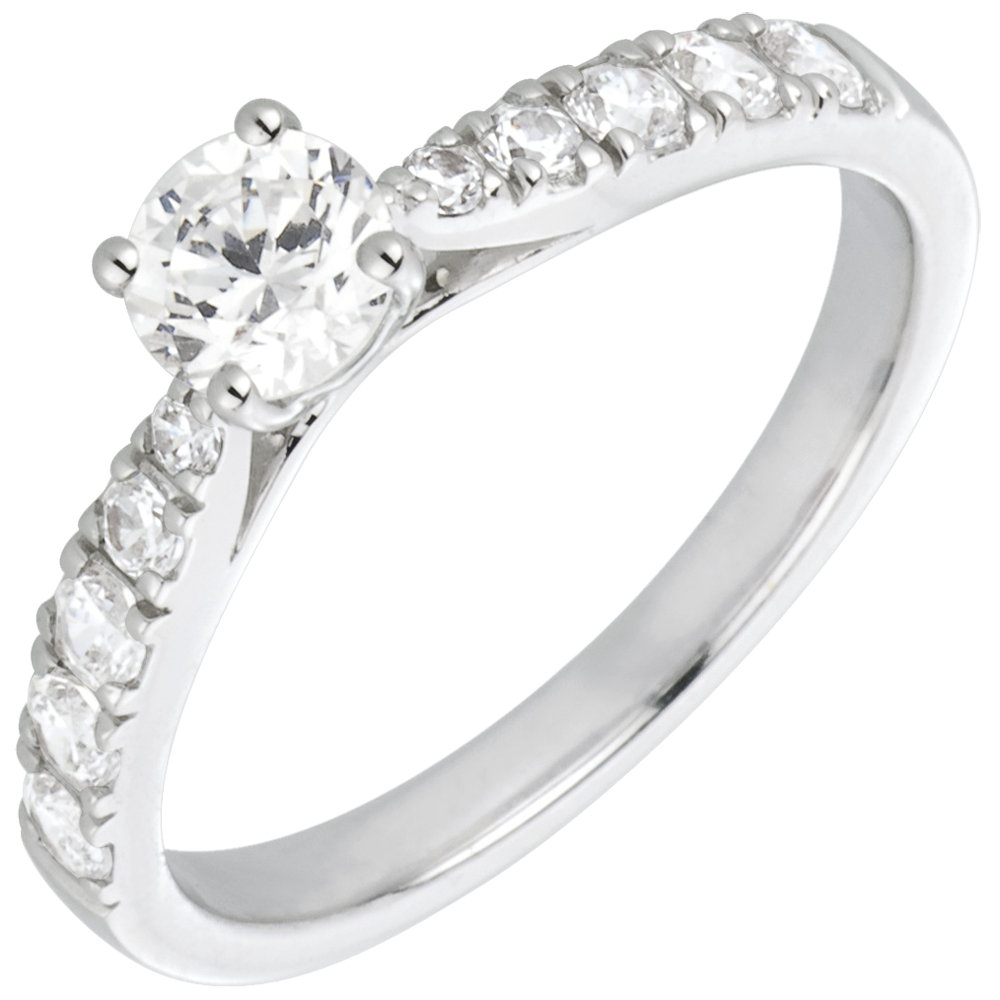Inel Solitaire Frumoasă Iubită aur alb de 18K şi diamante - diamant 0.4 carate