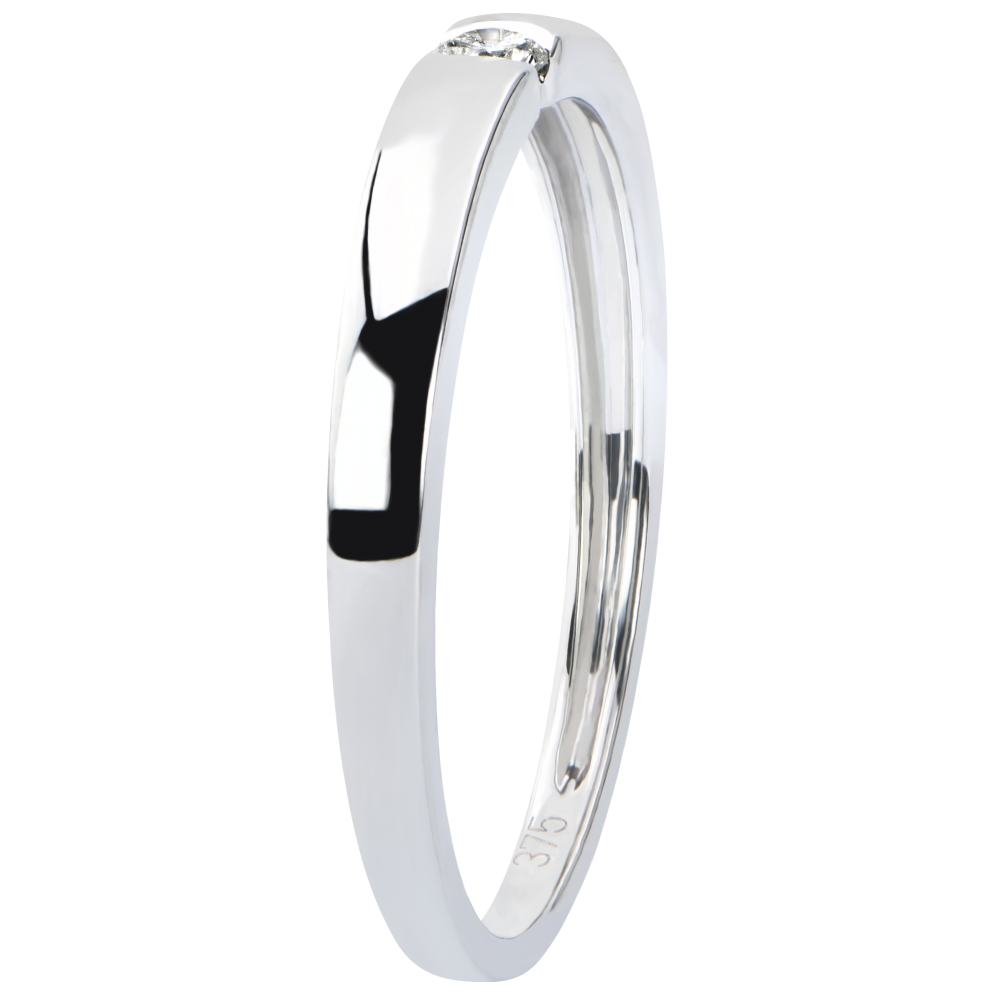 Inel Solitaire Origini - One - aur alb 9K şi diamante