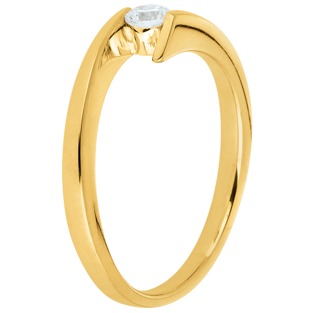 Inel solitaire Prinţesă stea aur galben de 9K - diamant 0.15 carate