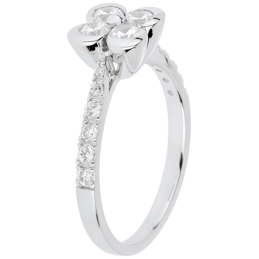 ÎNFLORIRE NR. 2Inel Trifoi - Aur alb 18 carate - Diamant ID : 3059
