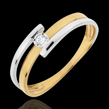 Inel Solitaire Sărut - aur alb şi aur galben de 18K