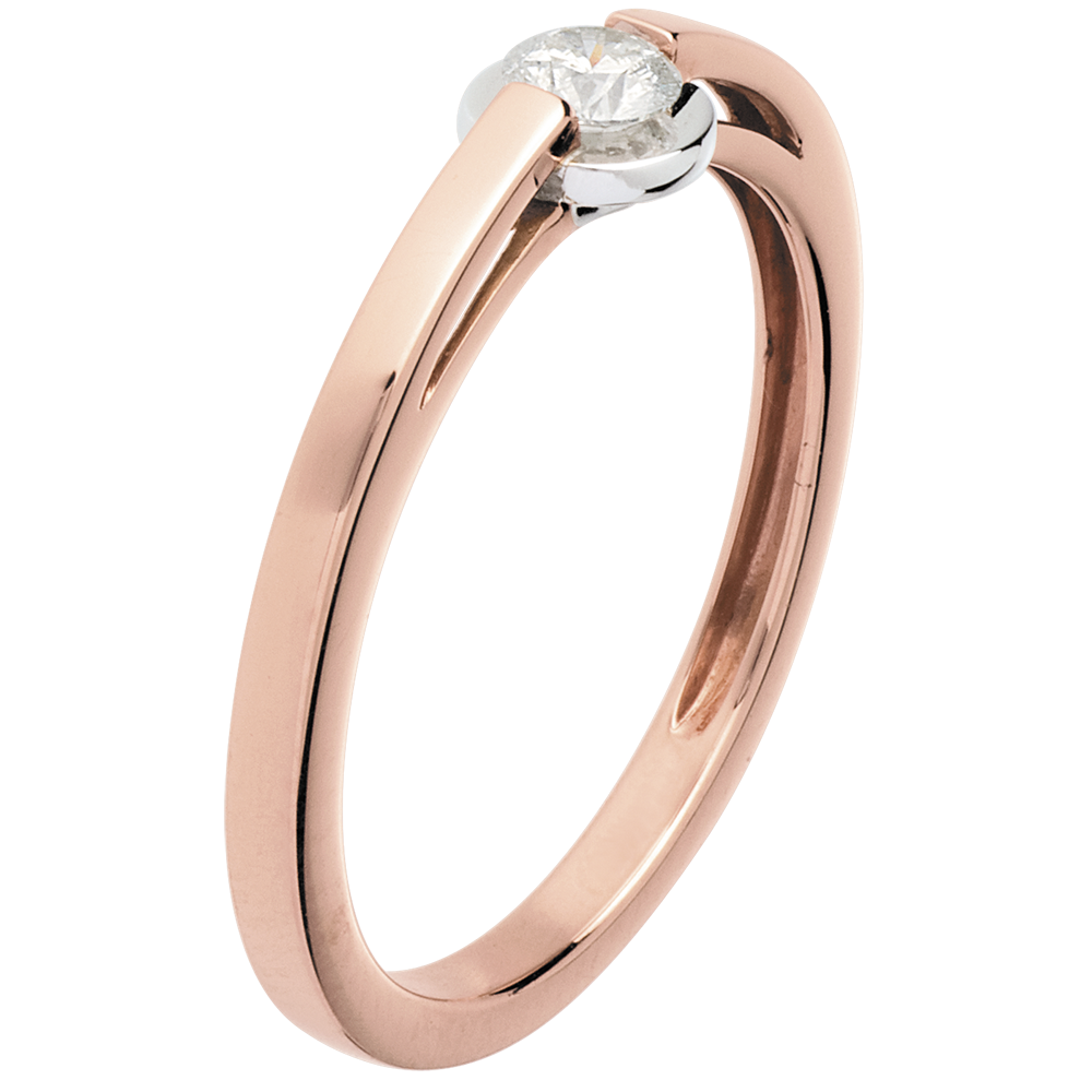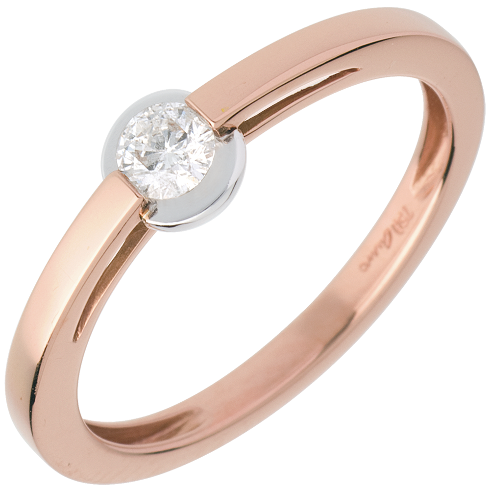 Inel Solitaire - setare bezel - aur alb şi aur roz de 18K