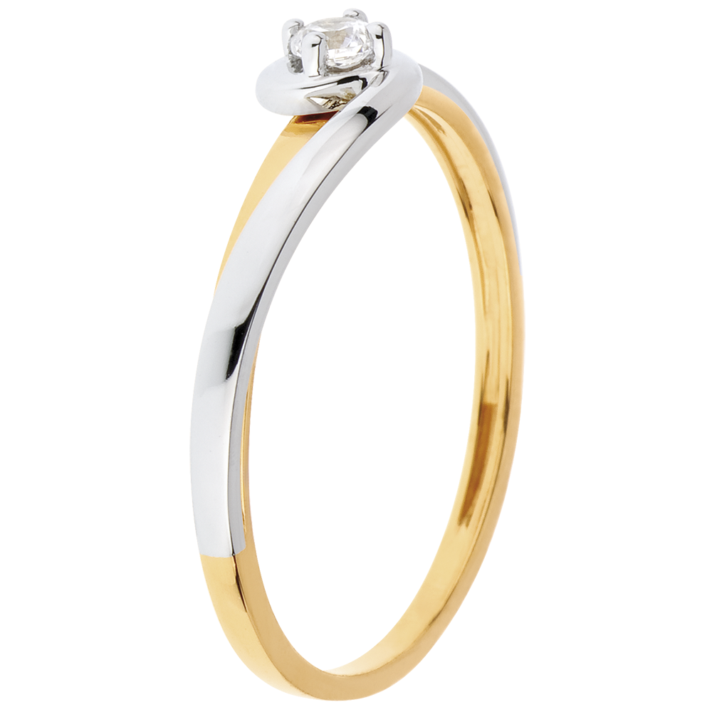 Inel Solitaire Silly - 0.08 carate - aur alb şi aur galben de 18K