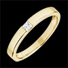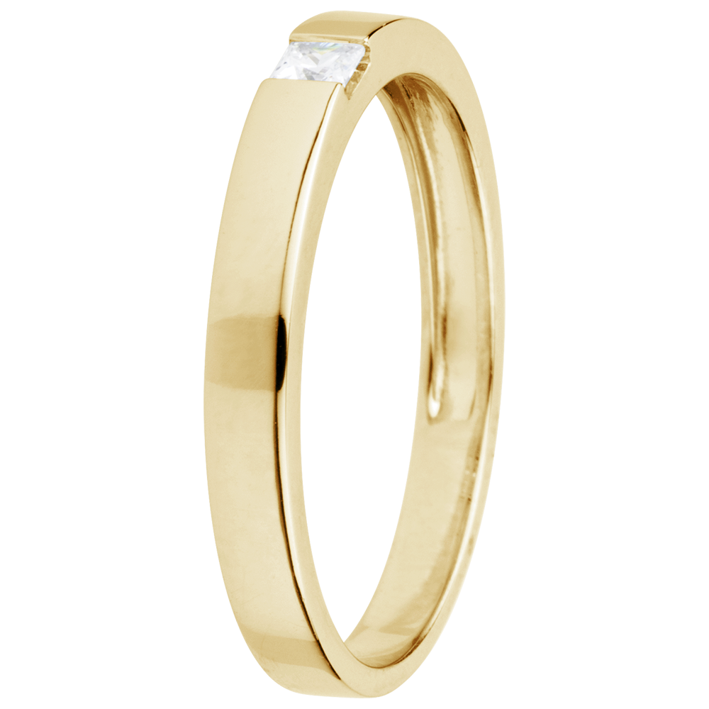 Un diamant pătrat tăiat princess prins într-o montură de aur galben. Un diamant solitaire original şi subtil oferind un confort optim.