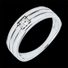 Un diamant solitaire încrustat într-un cadru de aur este înconjurat cu modernitate şi eleganţă de trei benzi de aur.