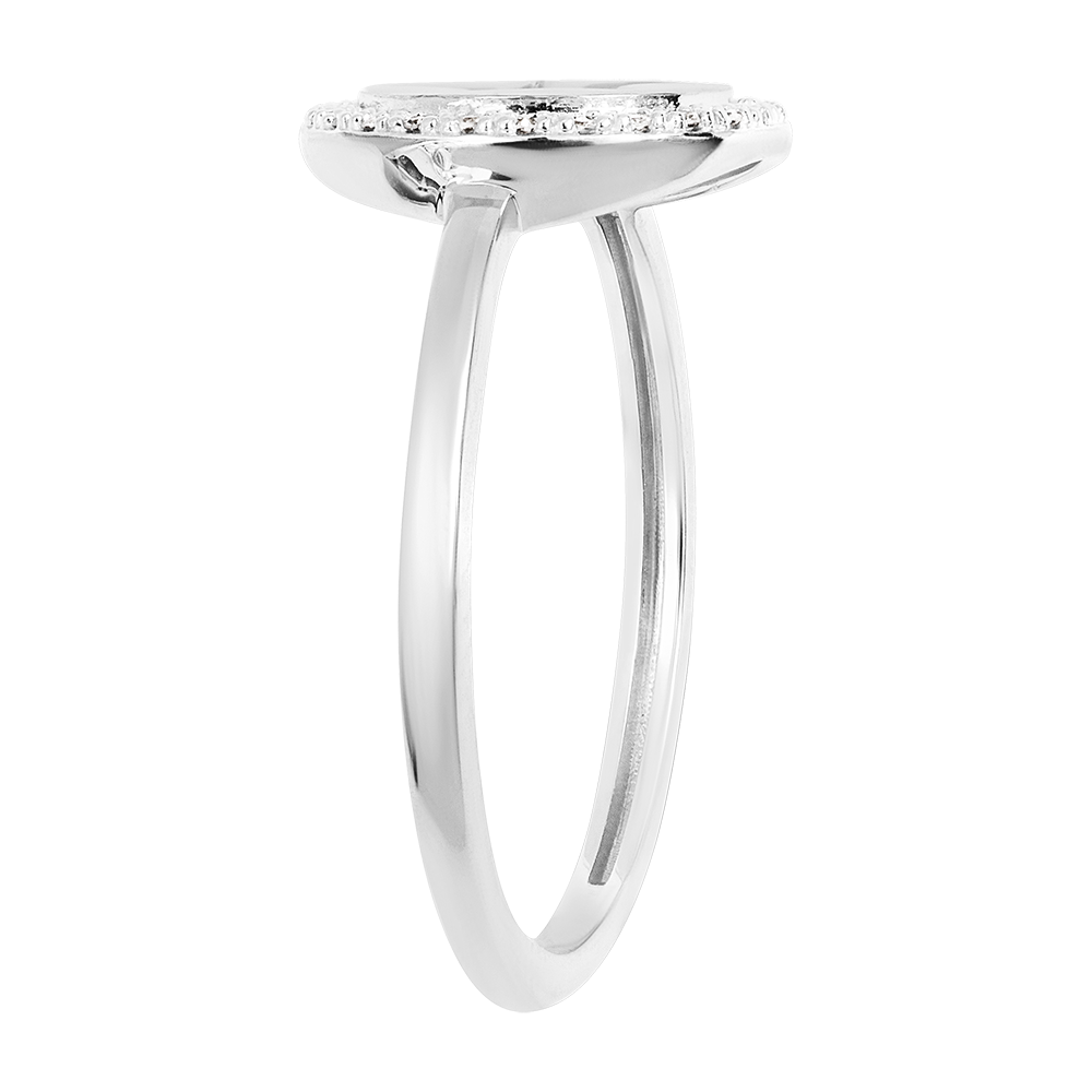 În jurul stelei, un pavé cu 25 de diamante cu greutatea totală de 0,07 carate oferă un strălucire subtilă și rafinată.