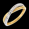 Inel tandem încrustat cu diamante - 9 diamante - aur alb şi aur galben de 18K