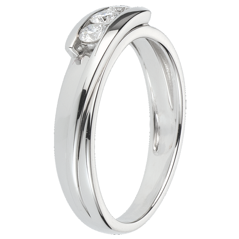 Inel trilogie bipolar aur alb de 18K - 0.24 carate - 3 diamante
