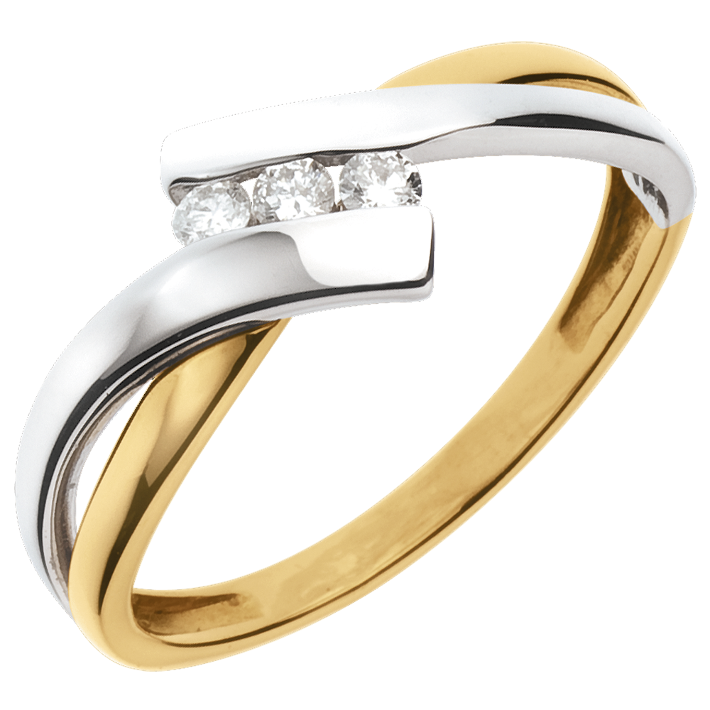 Inel Trilogie Cuib Preţios - 2 nuanţe de aur - 3 diamante - aur alb şi aur galben de 18K