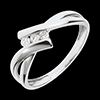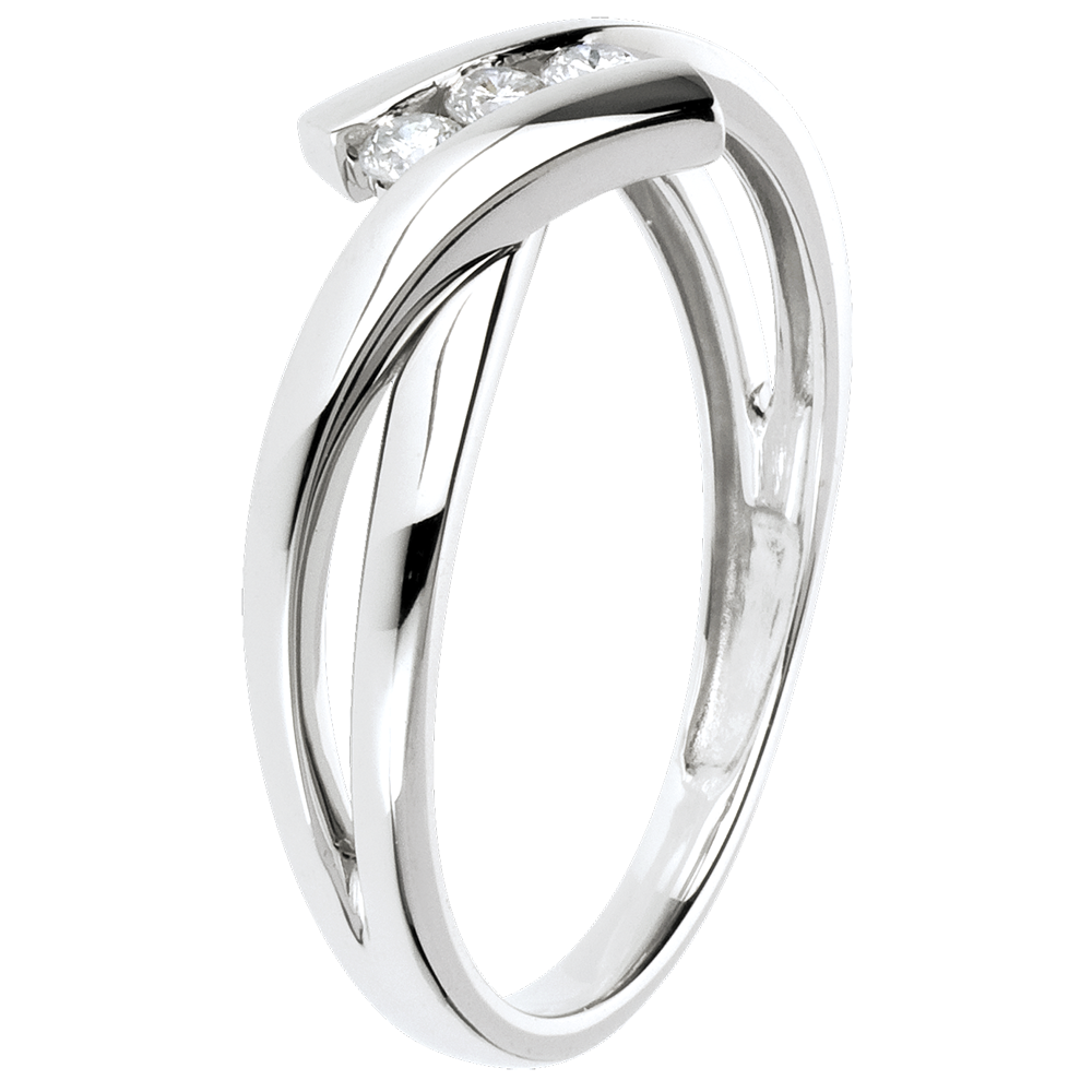 O montură vălurită, ce pare legănată, pentru a primi cu delicateţe şi puritate o trilogie de diamante.