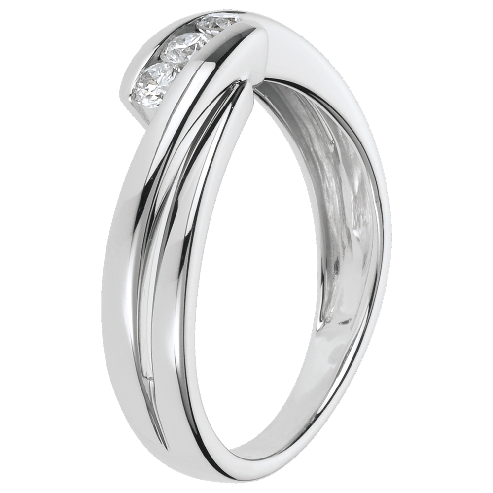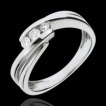 Inel Trilogie Cuib Preţios - Cântecel - aur alb de 18K - 0.21 carate - 3 diamante