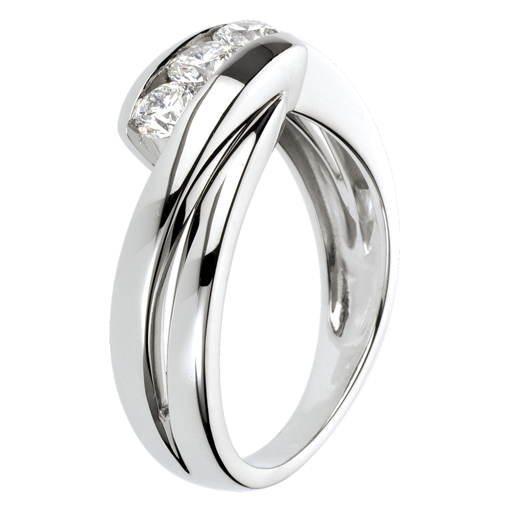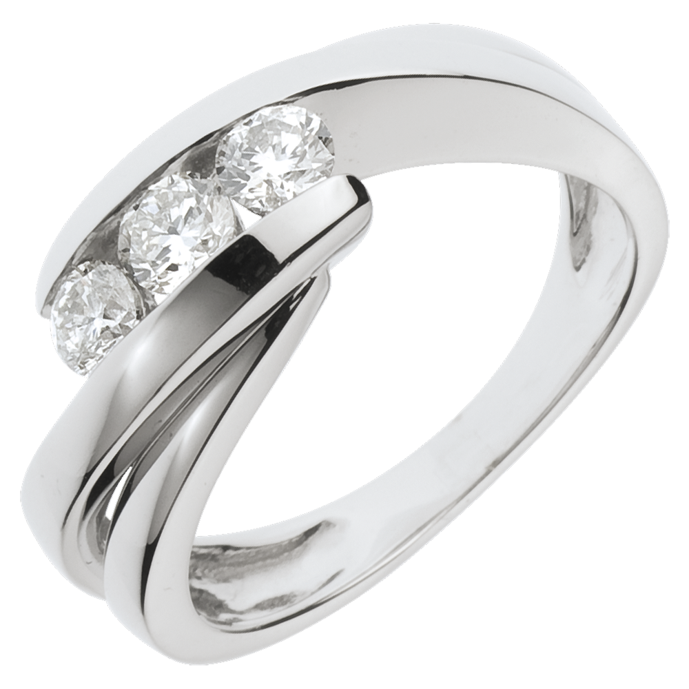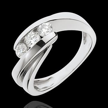 Inel Trilogie Cuib Preţios - Cântecel - aur alb de 18K - 0.54 carate - 3 diamante