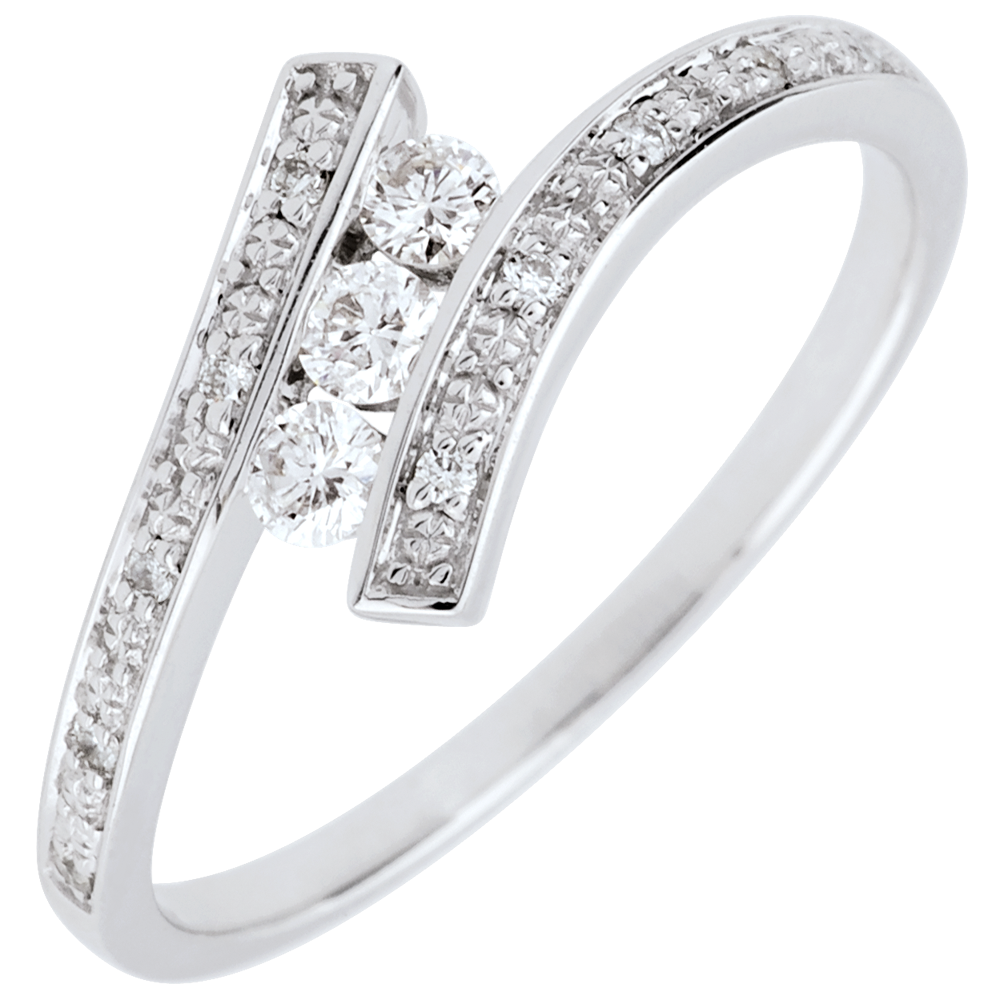 Inel Trilogie Cuib Preţios - Elyssa - aur alb de 18K