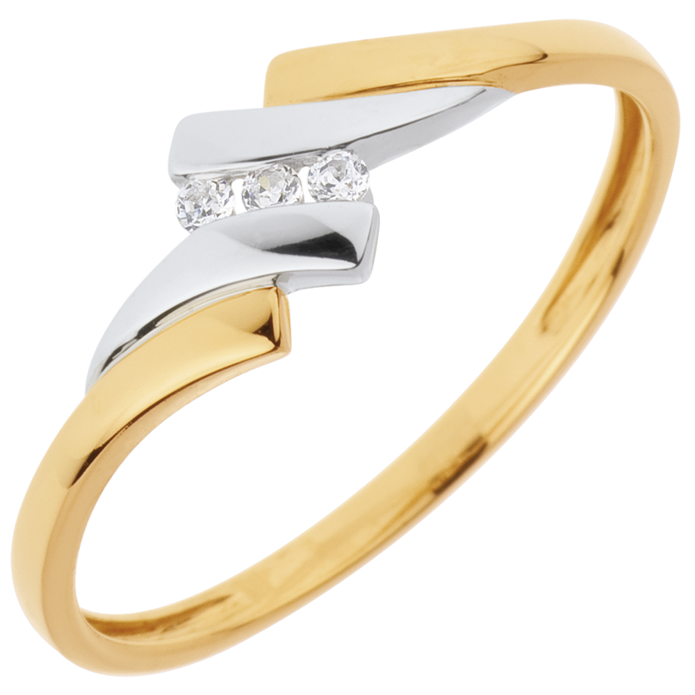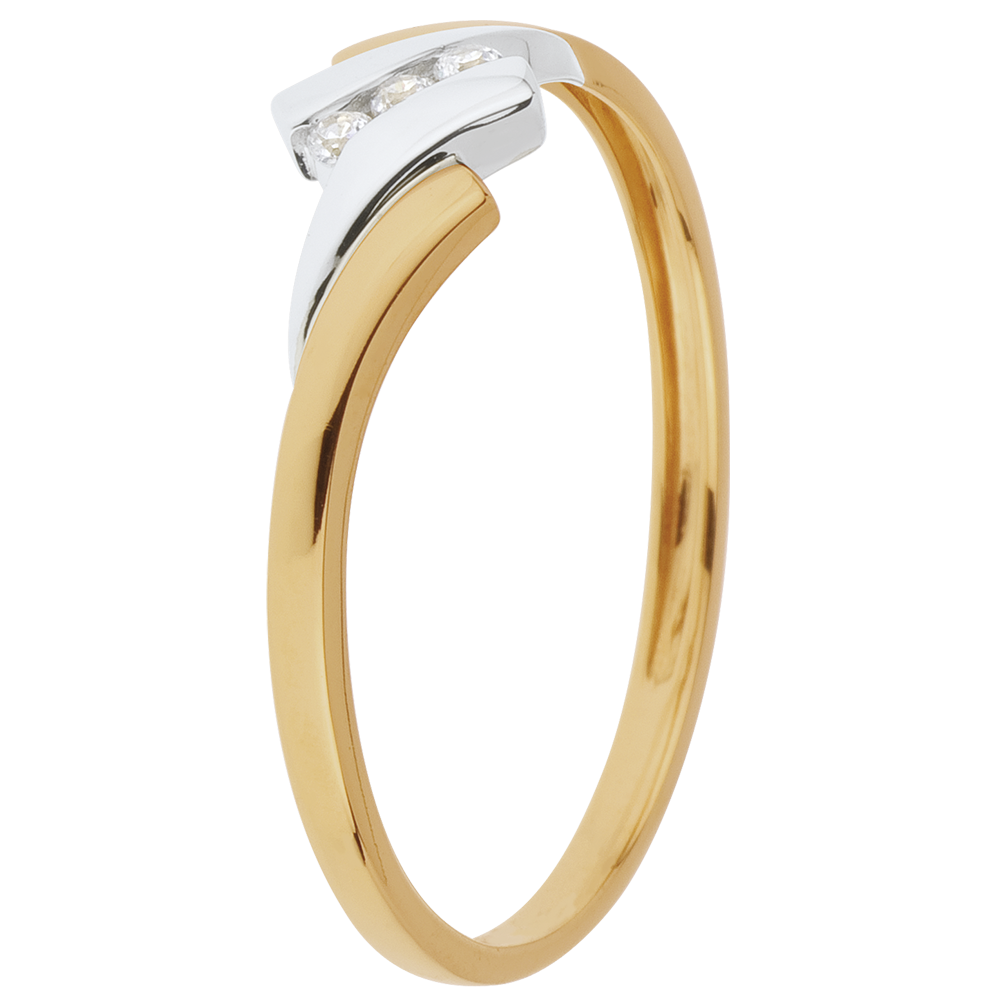 Inel Trilogie Cuib Preţios - Melodie - diamant 0.04 carate - aur alb şi aur galben de 18K