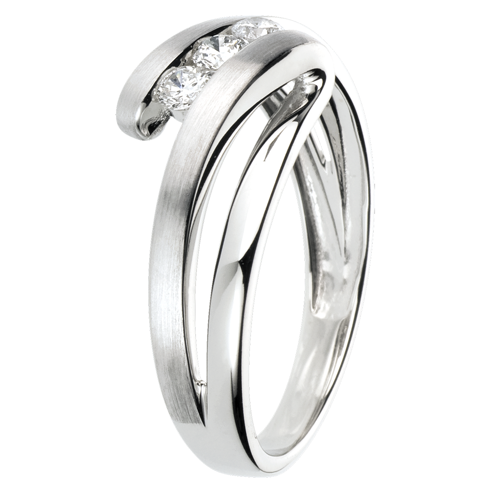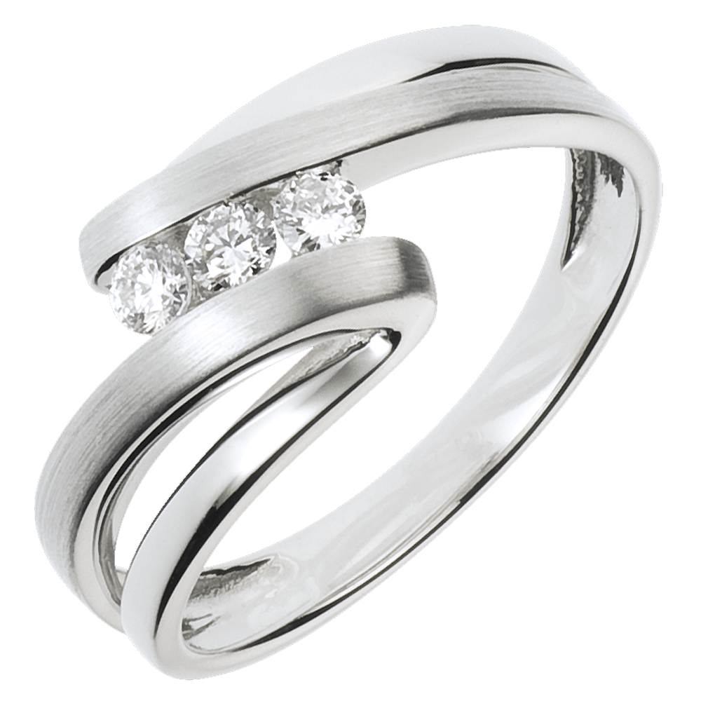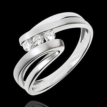 Inel Trilogie Cuib Preţios - Naiade - aur alb de 18K - 3 diamante