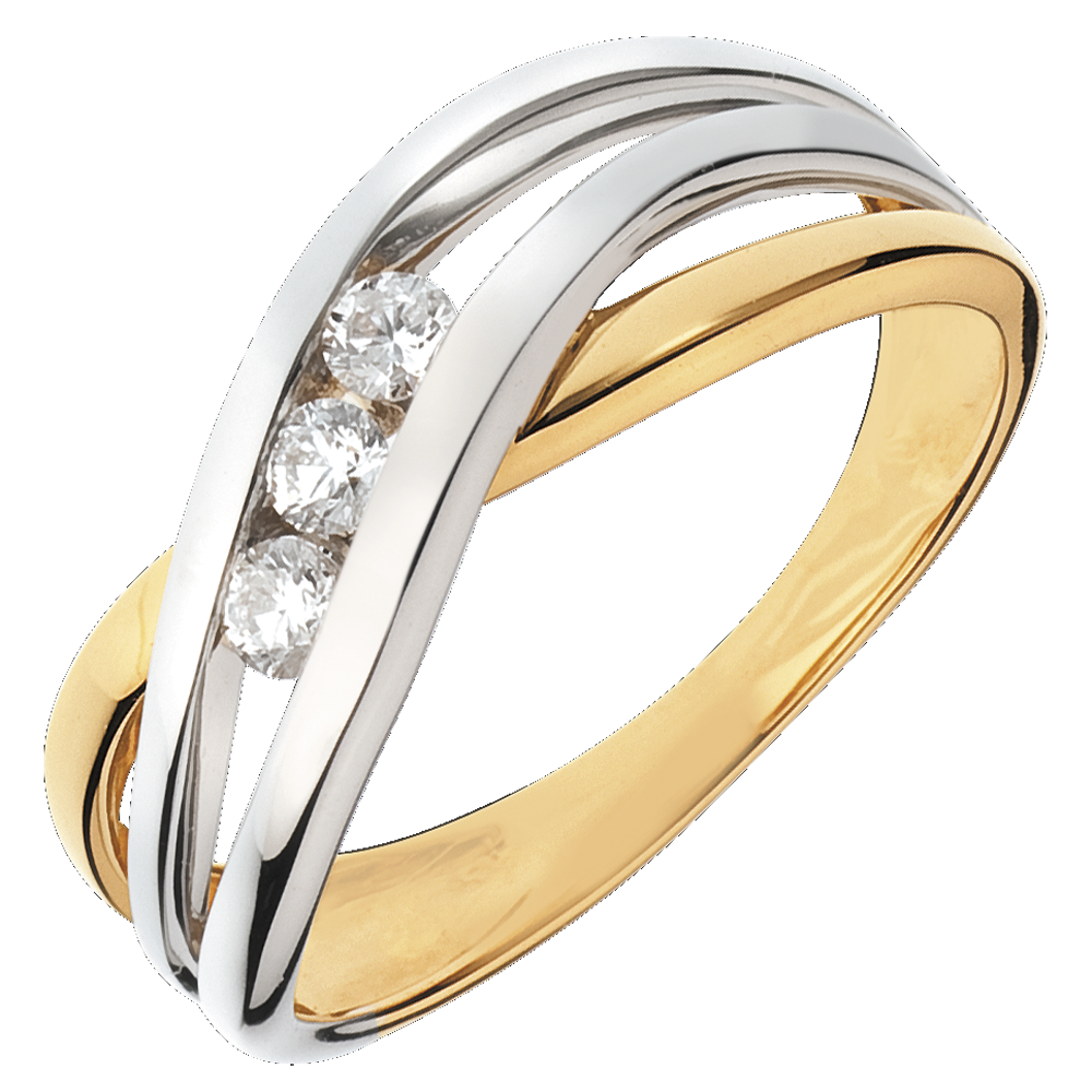 Inel Trilogie Cuib Preţios - Nuferi - 3 diamante - aur alb şi aur galben de 18K
