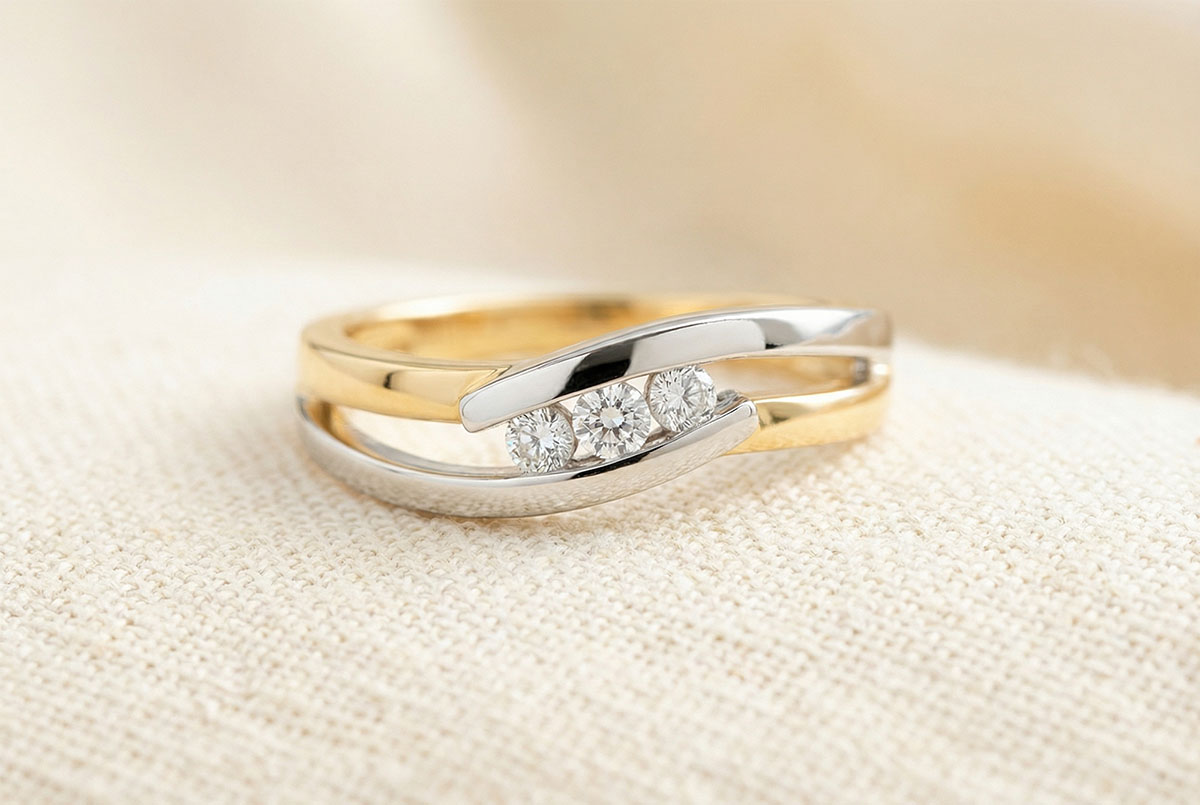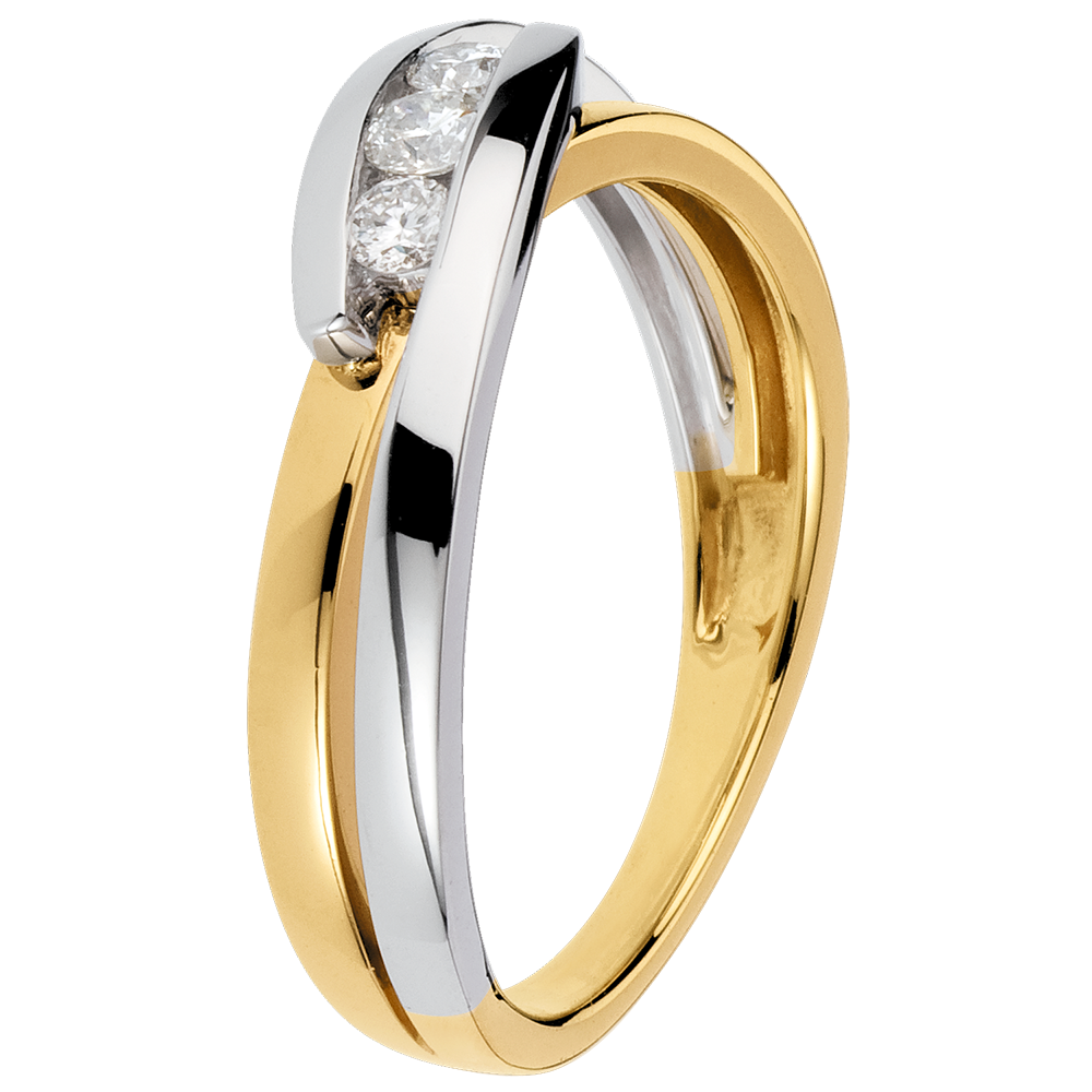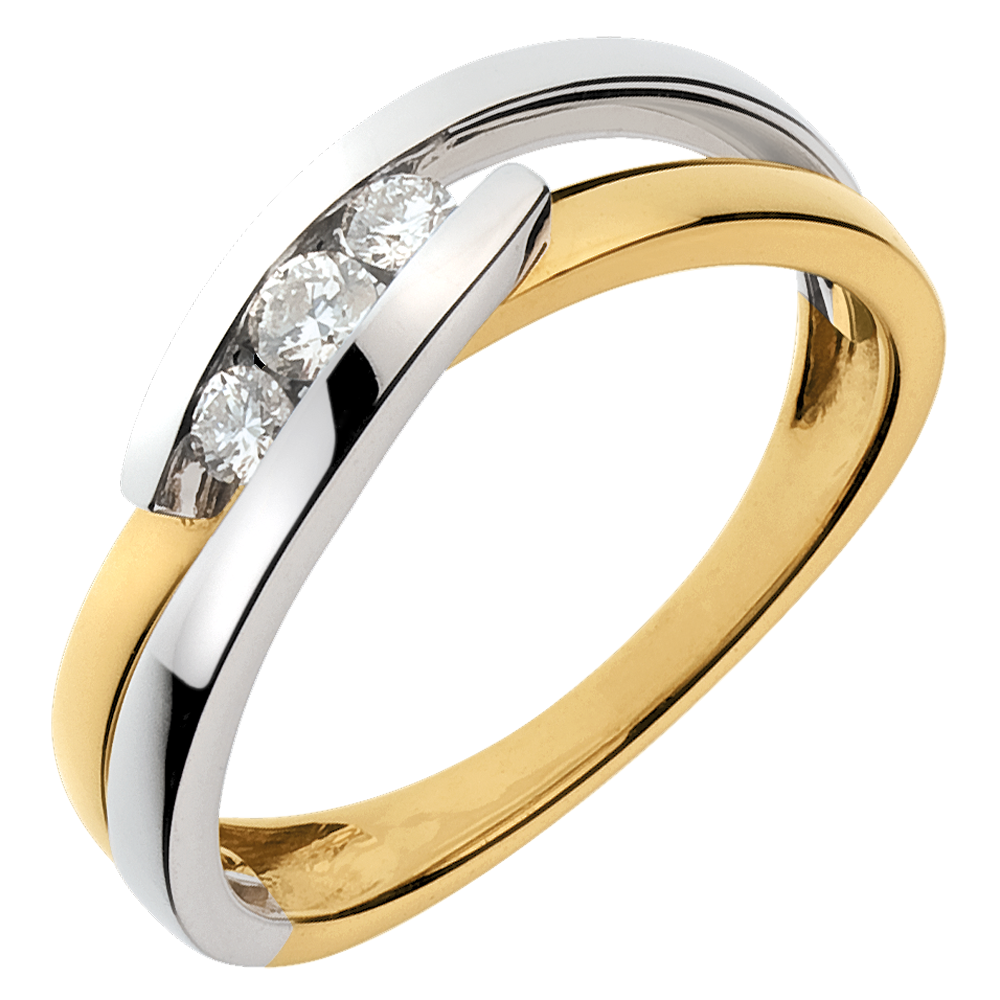Inel Trilogie Cuib Preţios - Serenadă - 3 diamante - aur alb şi aur galben de 18K
