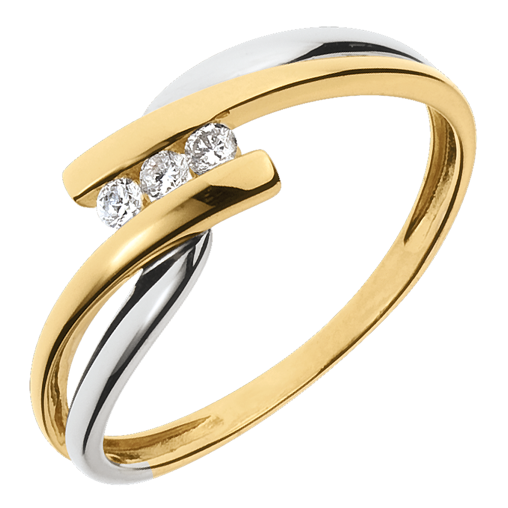 Inel Trilogie Cuib Preţios - Tango - diamant 0.07 carate - aur alb şi aur galben de 9K