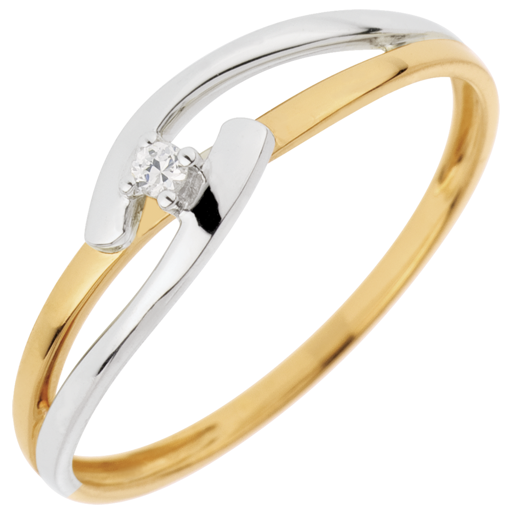 Inel Trilogie Cuib Preţios - Uniune Bicoloră - diamant 0.02 carate - aur alb şi aur galben de 18K