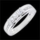O trilogie modernă şi puternică fixată în aur alb, aliniată pe o bandă fină de diamante tăiate briliant.