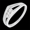 Trei diamante încrustate într-un unghi de aur alb creând un inel modern şi romantic.