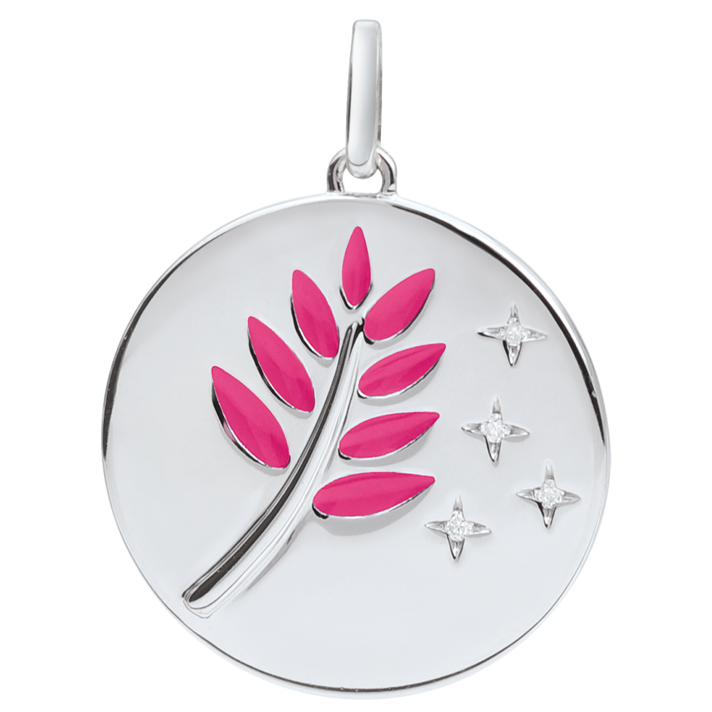 Medalion Crenguţa lui Olivier - Lac roz - 4 Diamante - aur alb de 18K
