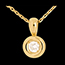 Un diamant alb de 0,28 carate este fixat cu grijă în inima unui caliciu din aur galben de 18 carate, creând un pandantiv cu o formă rotundă și elegantă.