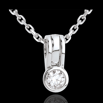 Un pandantiv cu diamant sobru şi puternic pentru o strălucire discretă la baza gâtului.
