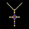Pandantiv Cruce Bizantină multicoloră - aur galben de 9K