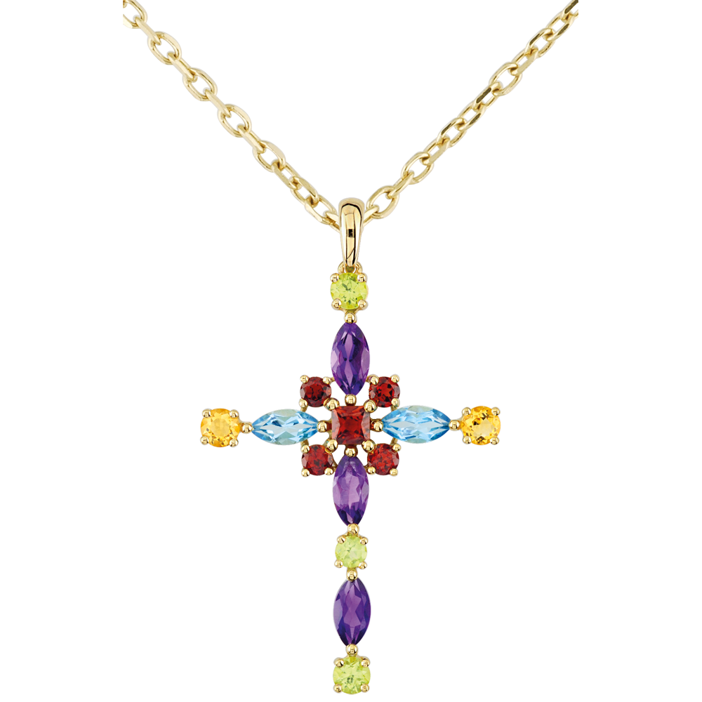 PASăRE DIN PARADIS NR. 8Pandantiv Cruce - Aur galben 9 carate - Citrin galben, Topaz albastru, Ametist, Peridot, Granat ID : 2275 4.9