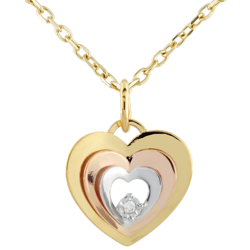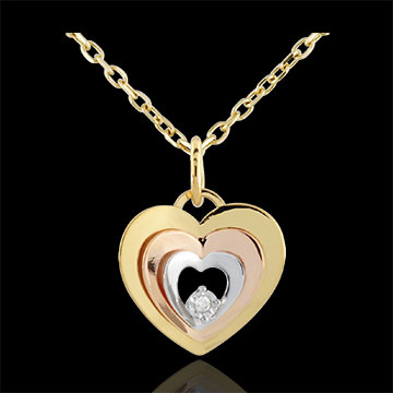 - Simbol unic al iubirii cu trei nuanţe de aur într-un pandantiv inimă