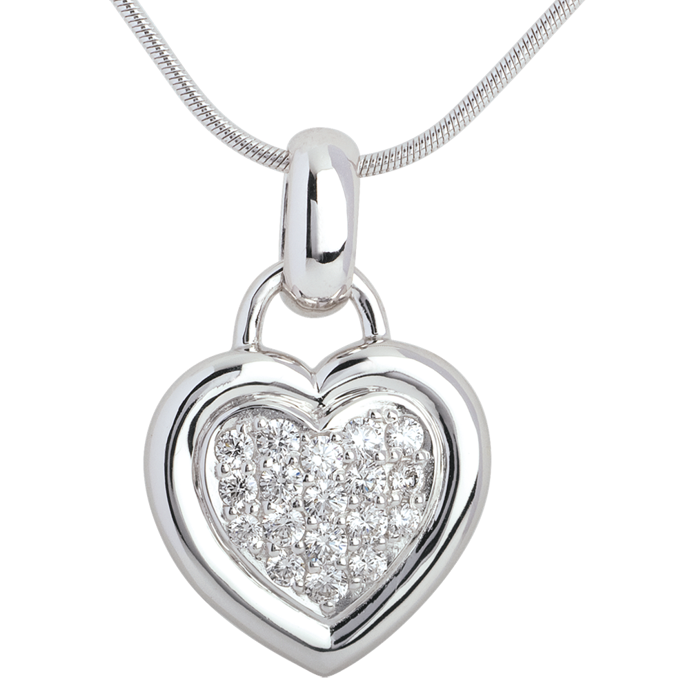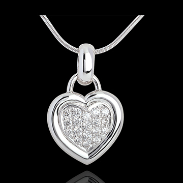 Pandantiv inimă din aur alb de 18K - 0.41 carate - 18 diamante