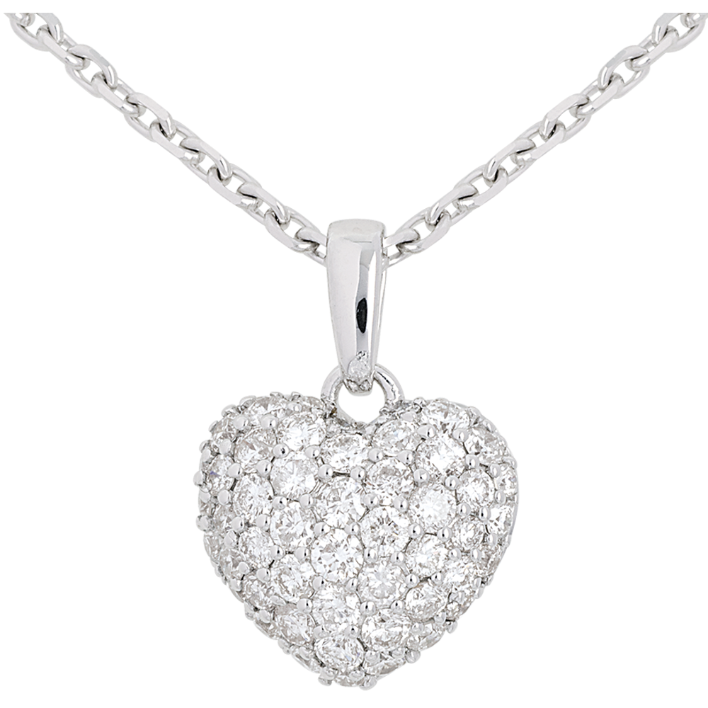 Pandantiv inimă din aur alb de 18K pavat - 0.67 carate - 50 de diamante