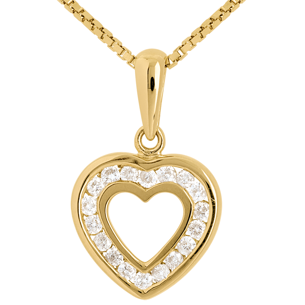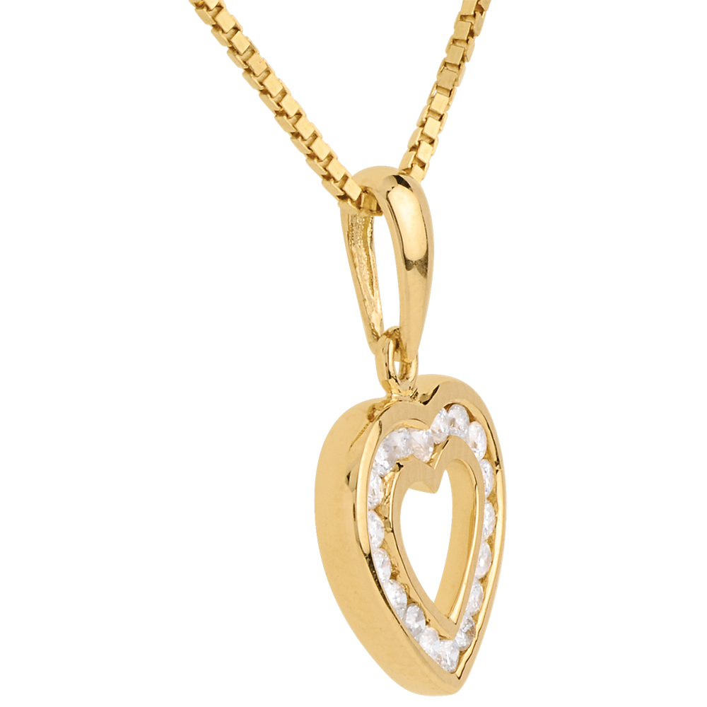 Pandantiv inimă în abis - 18 diamante - 0.18 carate - aur galben de 9K