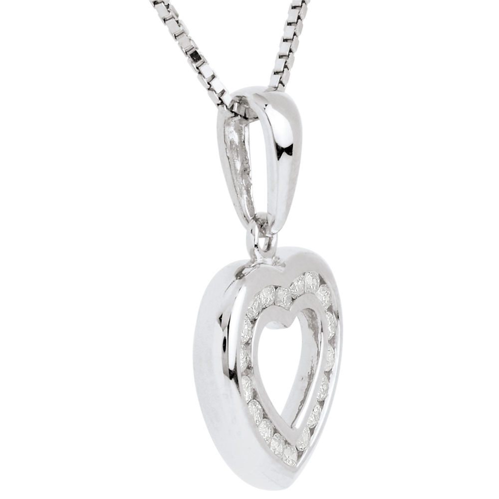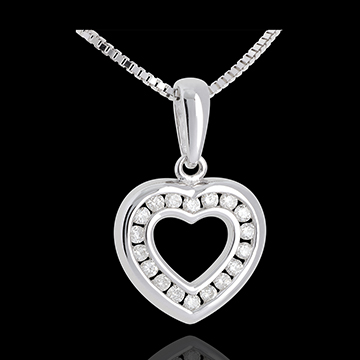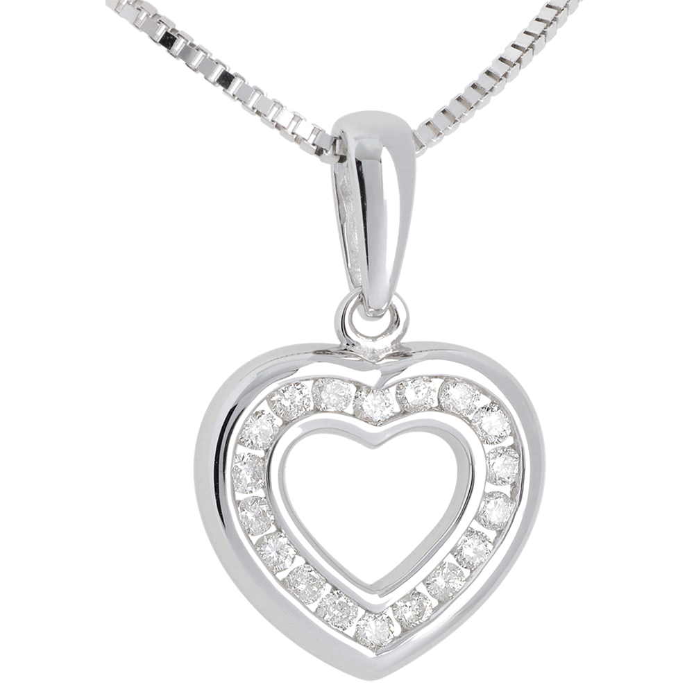 Pandantiv inimă în abis - aur alb de 18k pavat - 0.25 carate - 18 diamante