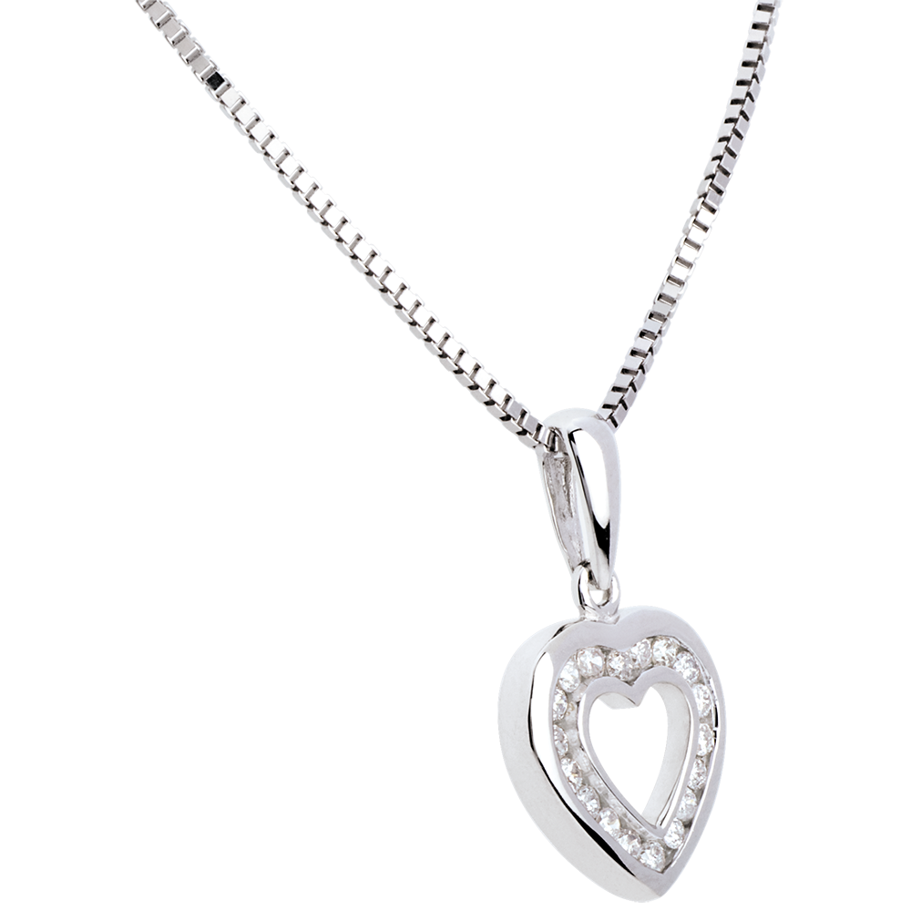 Pandantiv inimă în abis - aur alb de 18k pavat - 18 diamante