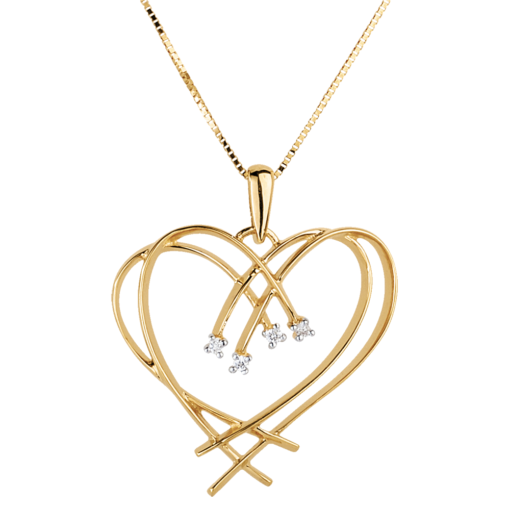 Pandantiv Inimă scânteie - 4 diamante - aur galben de 9K