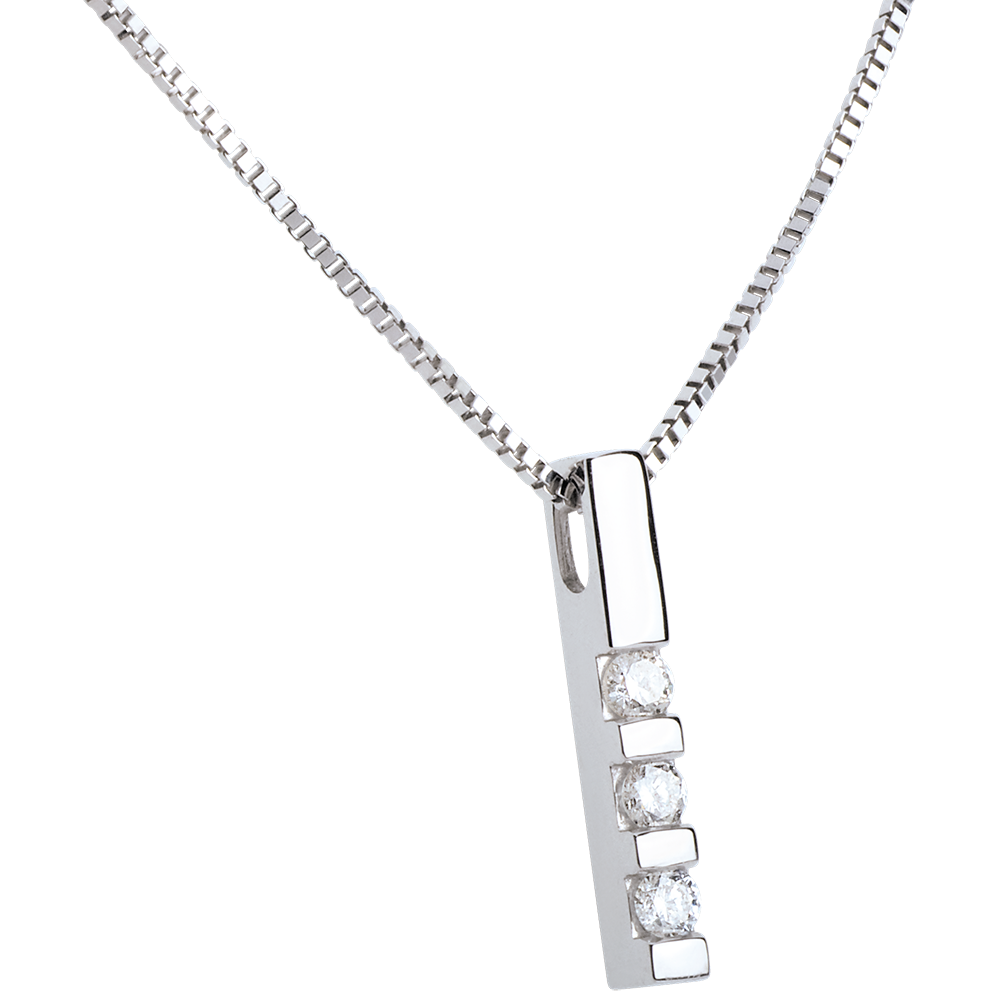 Pandantiv trilogie din aur alb de 18K - 0.22 carate - 3 diamante